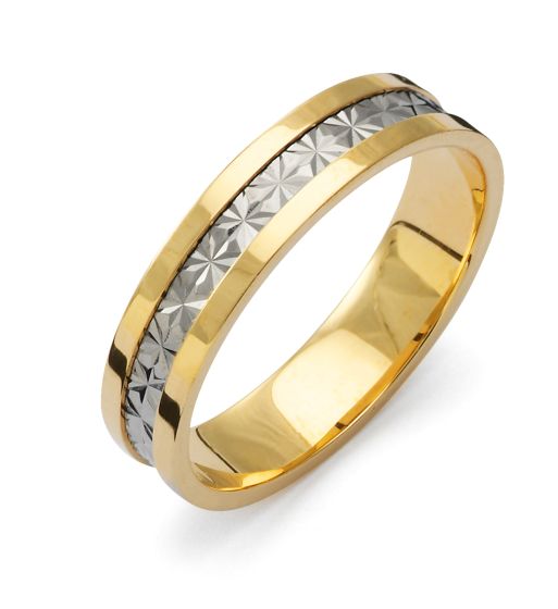 Flemming Uziel Fantasy, 2765 18K Guld Large 4,5 mm Förlovningsring unisex tvåfärgad ring herr